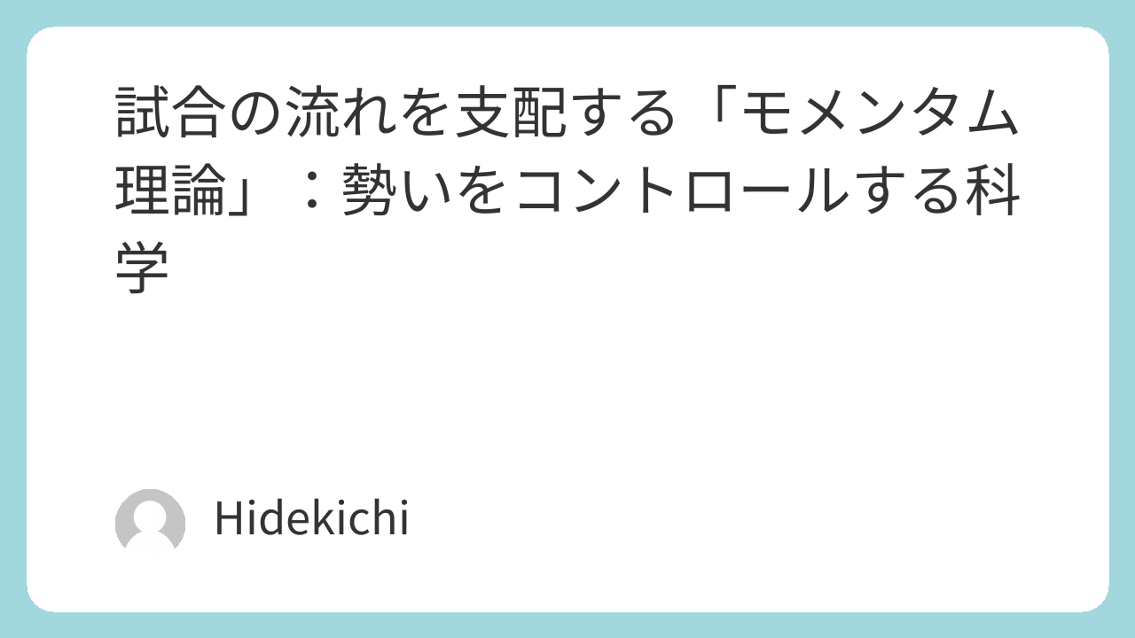 今回は、心理学と戦術の両面から**”流れ”を科学**し、どうすれば自分に有利なモメンタムを作り出せるのか、そして相手のモメンタムをどう断ち切るのかを解説します。