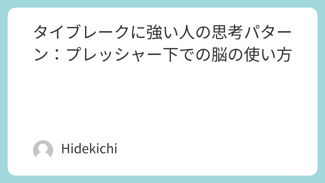 タイブレークで差がつくのは、メンタルの「強さ」ではなく、思考の「整理力」です。