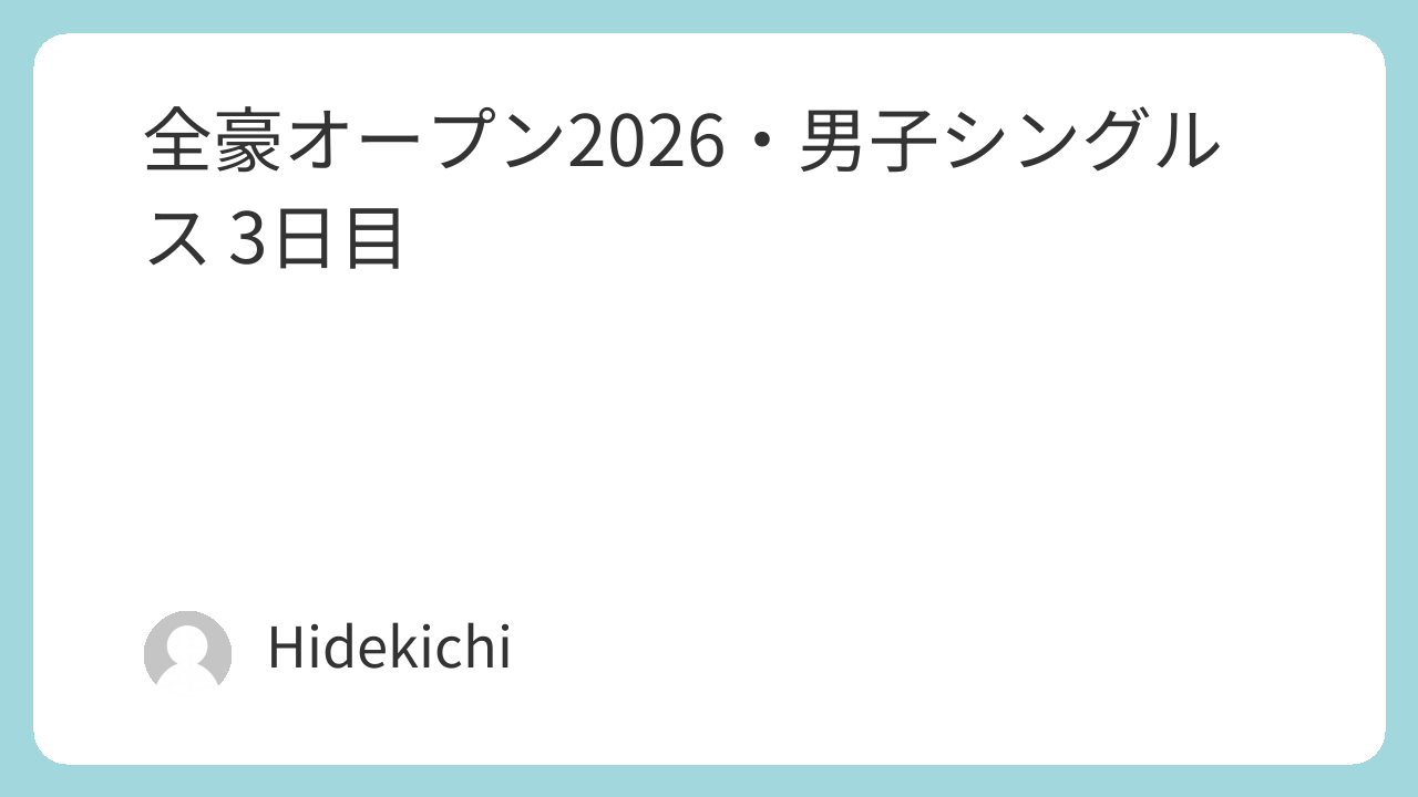 全豪オープン2026・男子シングルス 3日目注目カード